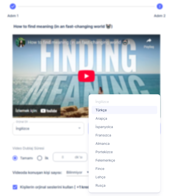 Sen sadece içeriğinin Youtube linkini ver veya video dosyanı yükle, dublajlanmasını istediğin dili seç ve onayla.